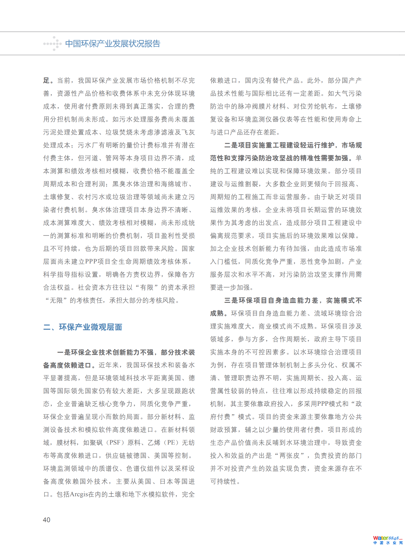 二、中國環(huán)境服務(wù)業(yè)存在的缺失