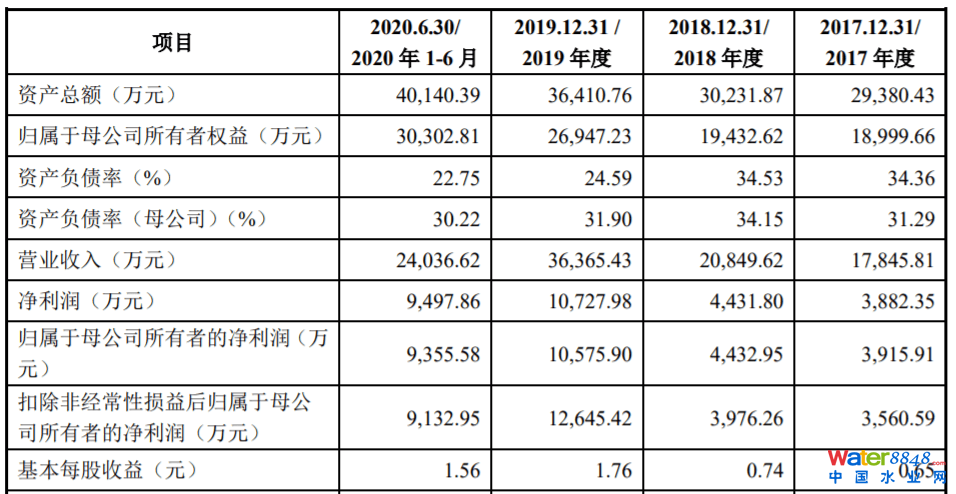 2017年至2020年上半年,國泰環(huán)保分別實(shí)現(xiàn)營業(yè)收入1.78億元、2.08億元、3.64億元、2.40億元;實(shí)現(xiàn)歸母凈利潤3,915.91萬元、4,432.95萬元、1.06億元、9,355.58萬元。