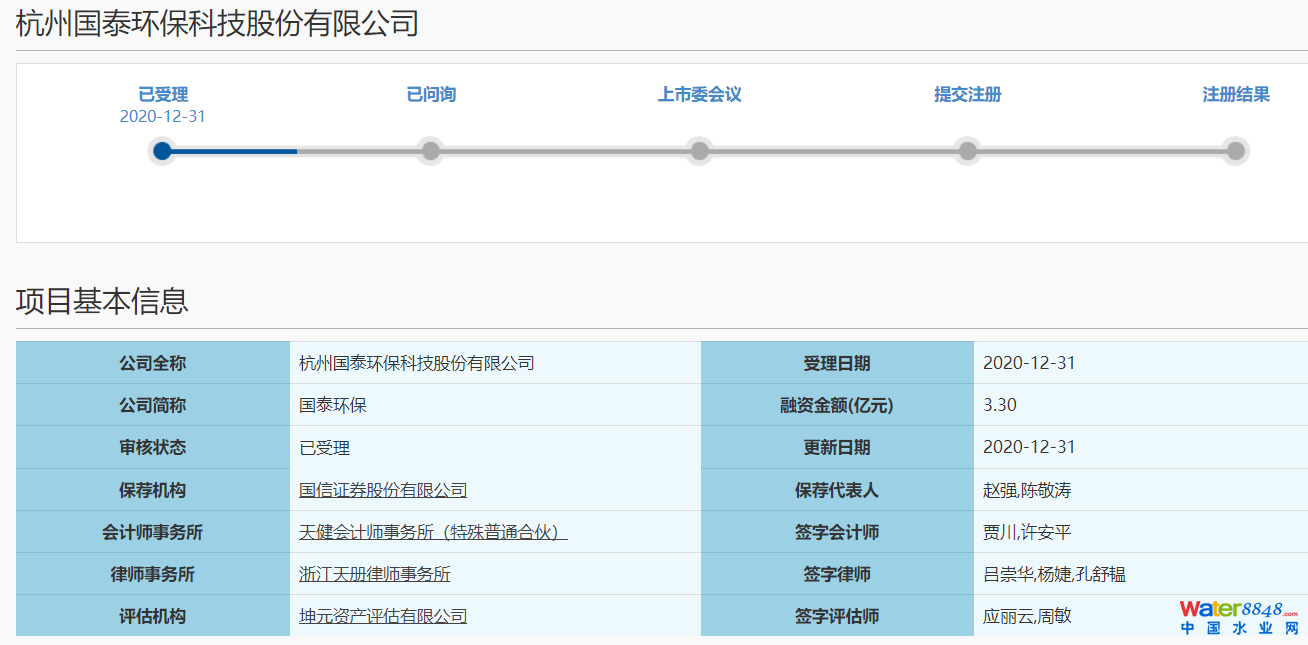 1月6日,資本邦獲悉,杭州國泰環(huán)保科技股份有限公司(以下簡稱:國泰環(huán)保)的科創(chuàng)板IPO申請已于近日獲上交所受理,國信證券股份有限公司擔(dān)任保薦機(jī)構(gòu)。