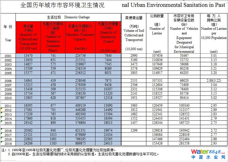 住建部最新統(tǒng)計(jì) |全國生活垃圾無害化處理廠及污水處理廠情況(截止2019年底)