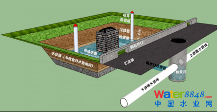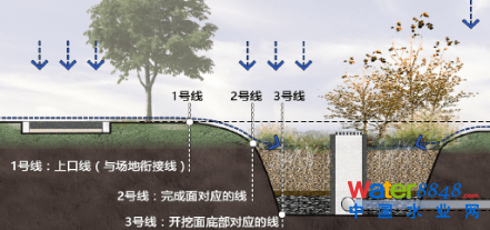 ③ 應(yīng)按照施工圖紙核算開(kāi)挖深度,核對(duì)完成面標(biāo)高、溢流口標(biāo)高在豎向上能否與匯水分區(qū)內(nèi)的道路、鋪裝、綠地順利銜接。