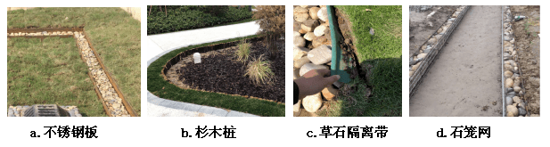 當(dāng)生物滯留池與周邊存在一定綠地的,可采用草石隔離帶作為自然緩坡土壤與過(guò)濾層介質(zhì)之間的格擋。