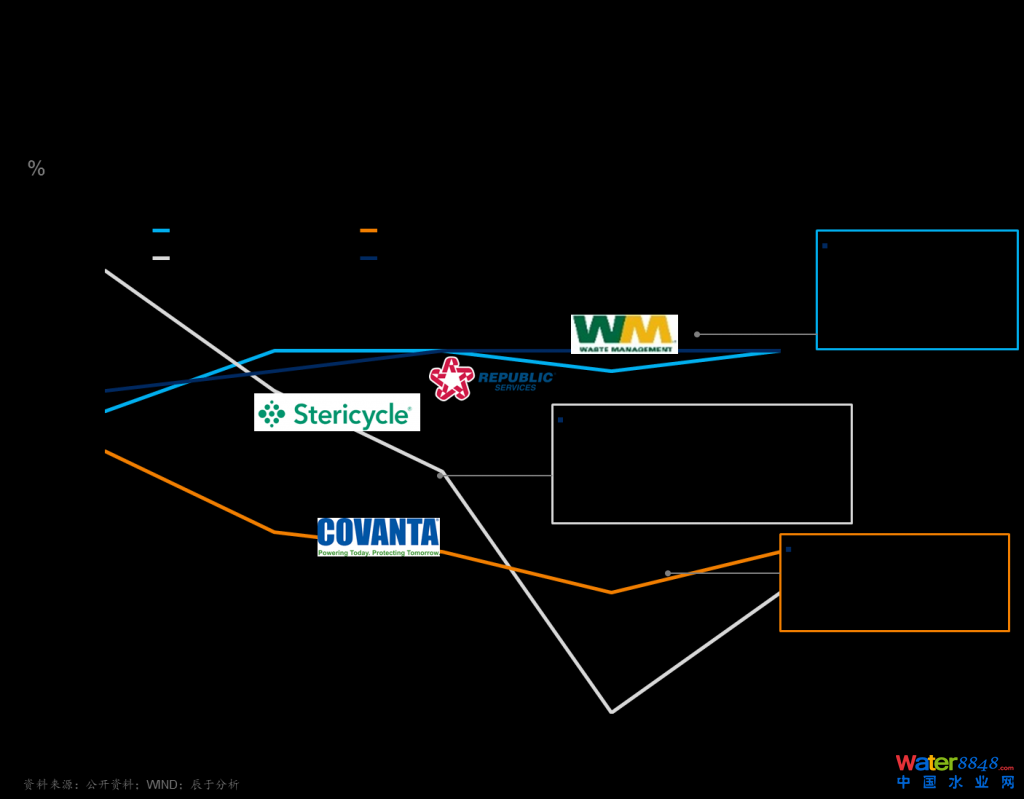實(shí)踐證明,全產(chǎn)業(yè)鏈模式不僅有利于增強(qiáng)企業(yè)綜合實(shí)力,而且有利于實(shí)現(xiàn)固廢資源最大化利用進(jìn)而提升盈利水平:對比美國部分固廢企業(yè)過去五年的盈利表現(xiàn),我們發(fā)現(xiàn)擁有全產(chǎn)業(yè)鏈模式的WM和RSG,相比僅專注于單一環(huán)節(jié)的COVANTA和Stericycle,EBIT率更高且更穩(wěn)定(見圖11)。