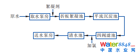 該凈水工藝即傳統(tǒng)意義的常規(guī)處理工藝,主要是去除原水中懸浮物、膠體物和部分大分子有機(jī)物,并殺滅水中絕大部分細(xì)菌和病毒,以保證飲用水的安全性。出廠水水質(zhì)達(dá)到《生活飲用水衛(wèi)生標(biāo)準(zhǔn)》(GB 5749—85)要求。