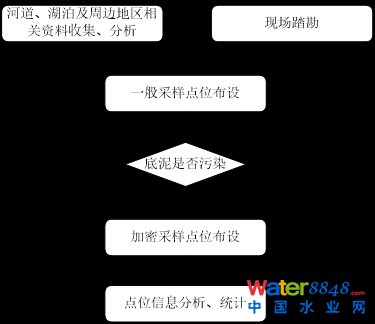 圖3.5.2 底泥污染物調(diào)查點(diǎn)位布設(shè)技術(shù)路線圖