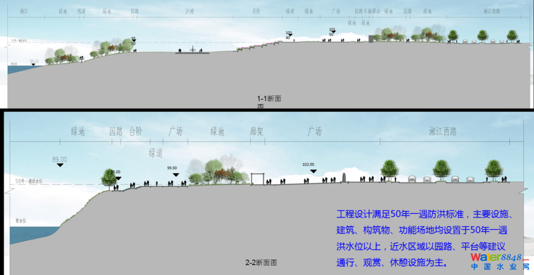 湘江西岸片區(qū)部分低洼帶雨季湘江會(huì)倒灌(湘江西岸片區(qū)伍家院段地勢低洼,每年汛期湘江水倒灌,2017年很多房屋淹到二層,形成嚴(yán)重的城市內(nèi)澇)。湘江西路采用路堤結(jié)合設(shè)計(jì)理念,建成后將解決這一民生問題。