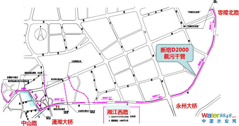 河西老城區(qū)原有一根截污干管,年久失修,部分段落雨污合流,導(dǎo)致汛期污水溢流至湘江,對環(huán)境造成污染,且原有污水管沿著老舊小區(qū)敷設(shè),走向彎曲不規(guī)則。