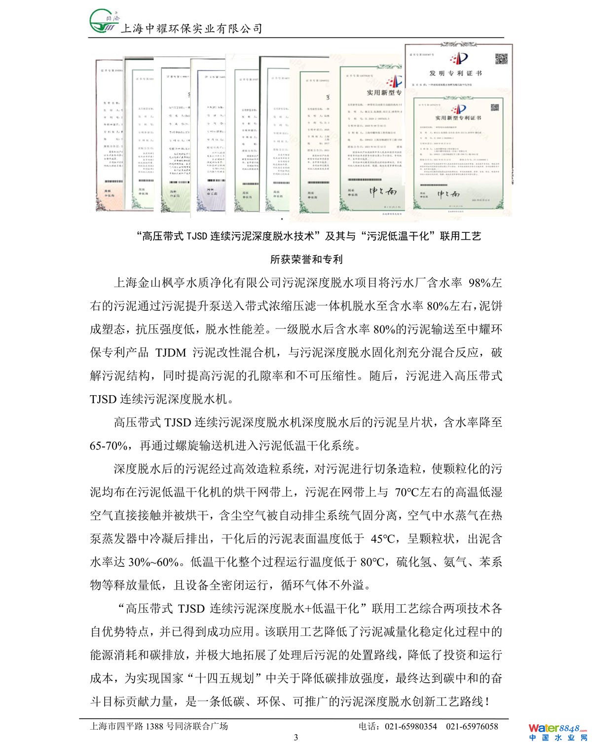 【污泥大會參觀項(xiàng)目之一】中耀環(huán)保-金山楓亭水質(zhì)凈化有限公司“高壓帶式TJSD 連續(xù)污泥深度脫水+低溫干化”聯(lián)用工藝污泥深度脫水處理項(xiàng)目