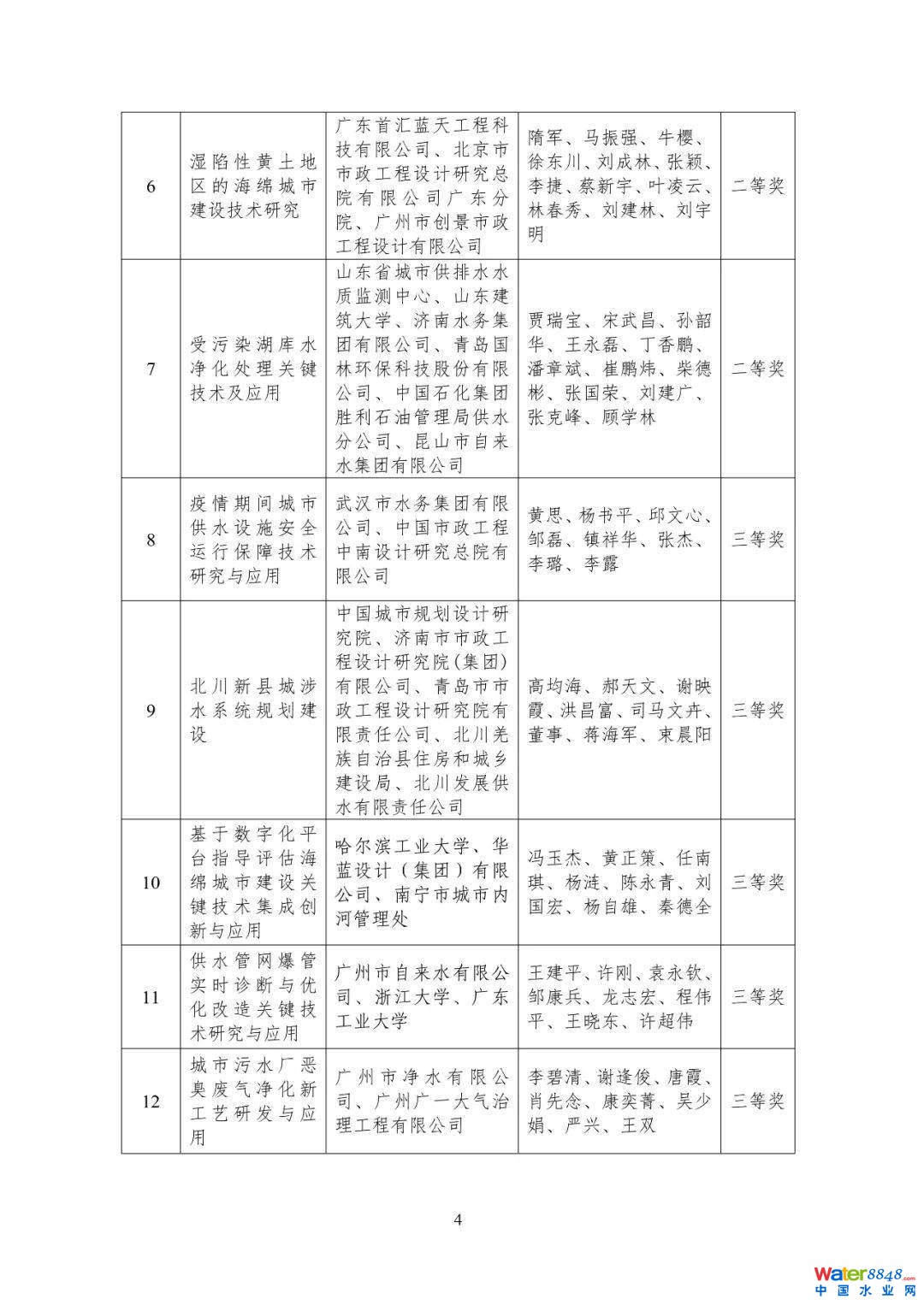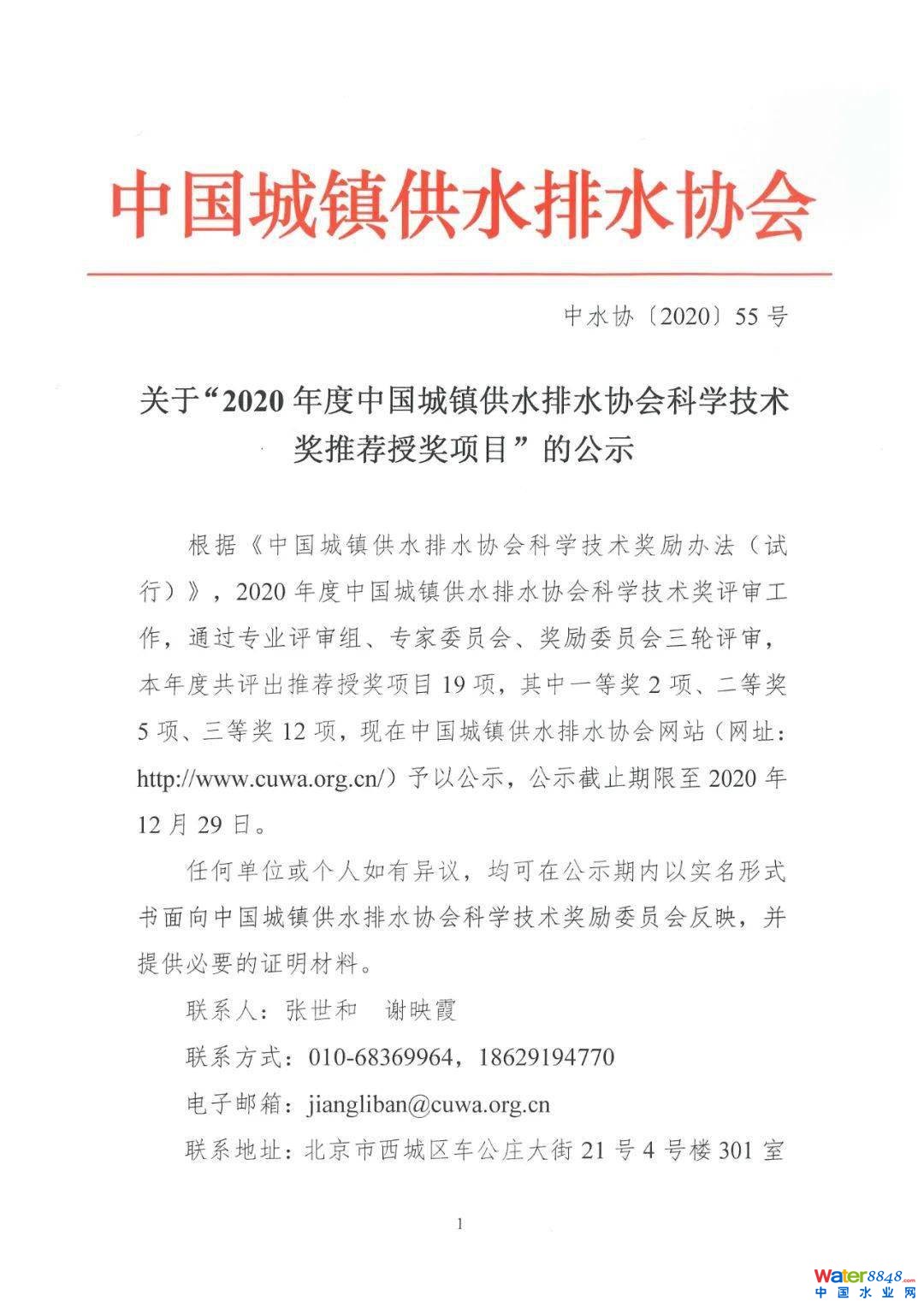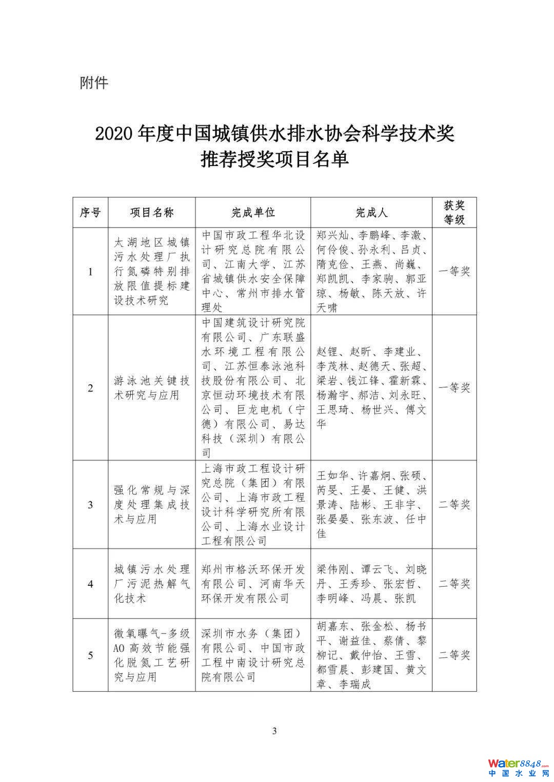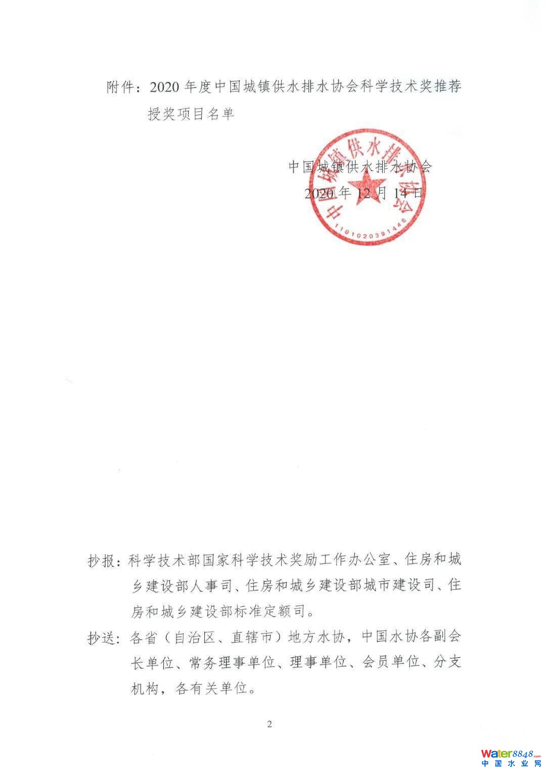 “2020年度中國城鎮(zhèn)供水排水協(xié)會(huì)科學(xué)技術(shù)獎(jiǎng)推薦授獎(jiǎng)項(xiàng)目”名單