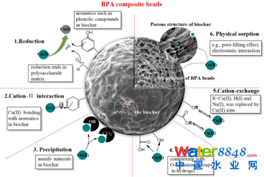 圖5 BPA復(fù)合凝膠球強(qiáng)化除Cu 2+機(jī)理