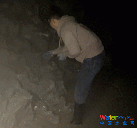 由于暴雨天氣,傾倒現(xiàn)場(chǎng)到處都是泥水,生態(tài)環(huán)境部門執(zhí)法人員深一腳淺一腳,深入現(xiàn)場(chǎng)展開排查,執(zhí)法人員先嗅辨淤泥有無刺激性味道,再用PH試紙進(jìn)行檢測(cè)。