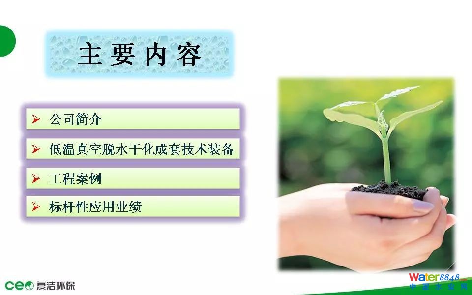 許太明:各位專家,各位同仁,下午好,我們每年都要參加這個會,所以對我們這個技術(shù)了解的專家、同仁還是比較多的。今天我重點介紹一下我們這個技術(shù)——低溫真空脫水干化成套技術(shù)裝備在地下式污水處理廠的應(yīng)用。分為四部分匯報:公司簡介、技術(shù)介紹、工程案例分享,第四是這些年過來,重點領(lǐng)域的一些標(biāo)桿性工程業(yè)績。