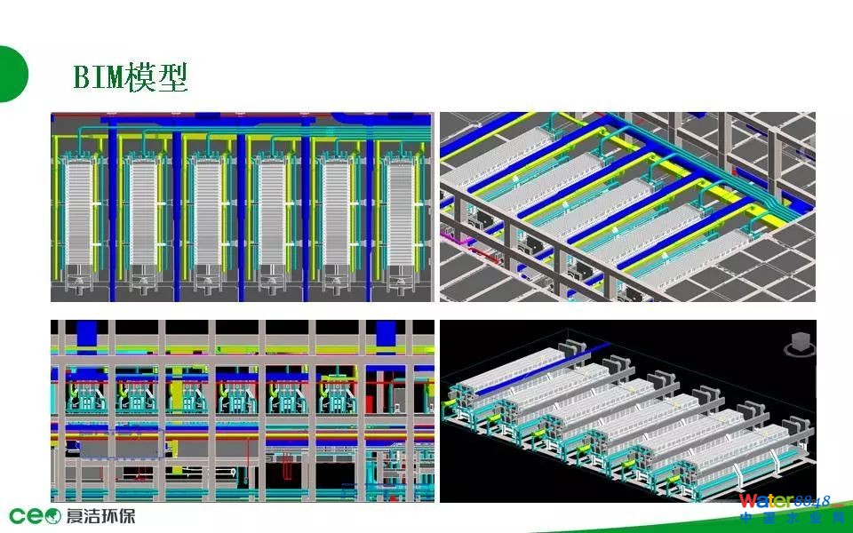 另外一個項目,也是上海目前在建的最大全地下項目——泰和污水處理廠,近期規(guī)模40萬噸,遠(yuǎn)期規(guī)模55萬噸,污泥處理量是480噸每天,最后的泥干化到40%以下,到石洞口進(jìn)行焚燒。這是我們做的BIM設(shè)計的效果。