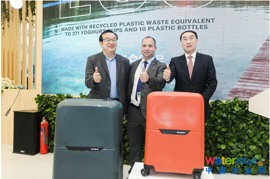環(huán)博會開幕首日,蘇伊士展臺上人頭攢動,新秀麗集團大中華區(qū)總裁馬瑞國、利安德巴賽爾中國合資企業(yè)管理及聚烯烴業(yè)務副總裁付立民、蘇伊士亞洲地區(qū)固廢資源管理固廢基建及新服務業(yè)務總監(jiān)古山(Francois JENNY)主持揭幕儀式,攜手推出由回收塑料制成的可持續(xù)發(fā)展系列旅行箱,展示了三方共同致力于減少碳足跡,賦予塑料廢棄物第二次生命,減少原始材料的使用的愿景。借此機會,古山先生還向現(xiàn)場來賓介紹了“蘇伊士可持續(xù)固廢管理方案”,分享新形勢下固廢資源的源頭管理、過程追溯、合理處置利用及減碳排放貢獻的重要性。