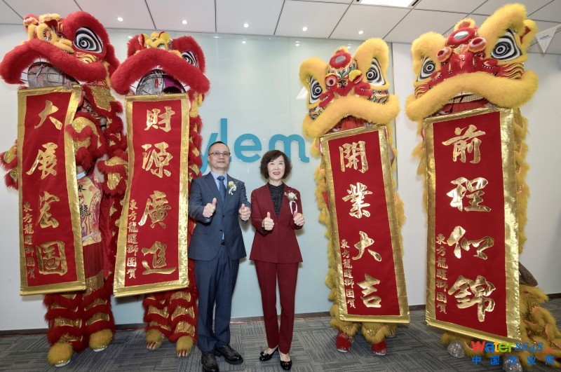 賽萊默中國(guó)及北亞區(qū)總裁呂淑萍女士(右)與賽萊默中國(guó)市政工業(yè)及一帶一路項(xiàng)目團(tuán)隊(duì)銷售總經(jīng)理趙東輝先生在開業(yè)典禮上為雄獅點(diǎn)睛,慶祝賽萊默深圳銷售辦事處開張大吉