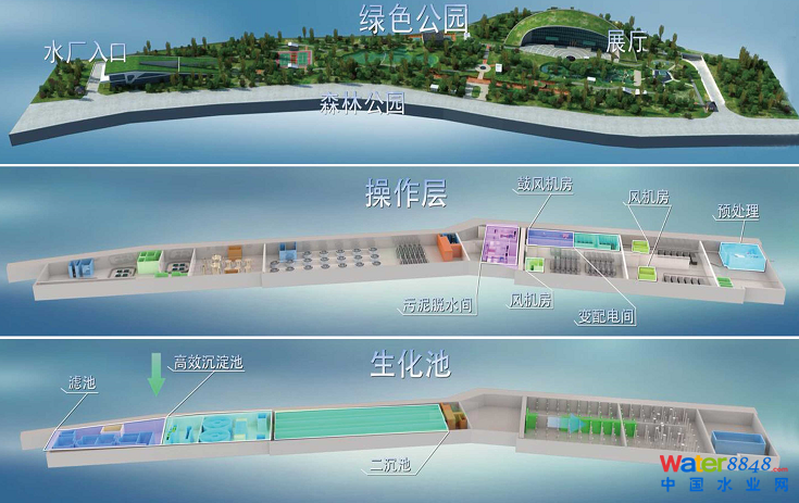 環(huán)境友好、資源節(jié)約、生態(tài)安全的下沉式再生水處理系統(tǒng),是傳統(tǒng)污水處理廠的全面升級(jí),占地僅為傳統(tǒng)地面建廠的1/3,有效節(jié)約土地,節(jié)省管網(wǎng)等投資,并充分利用地上空間建設(shè)城市生態(tài)綜合體,是人口密集、城市中心城區(qū)市政污水處理系統(tǒng)創(chuàng)新的必由之路。