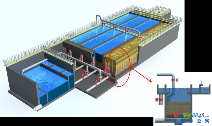 反硝化深床濾池特別適用于市政污水廠的提標(biāo)改造,例如:從一級(jí)B標(biāo)準(zhǔn)向一級(jí)A標(biāo)準(zhǔn)的提升,從一級(jí)A標(biāo)準(zhǔn)至地表Ⅳ類水的提升。