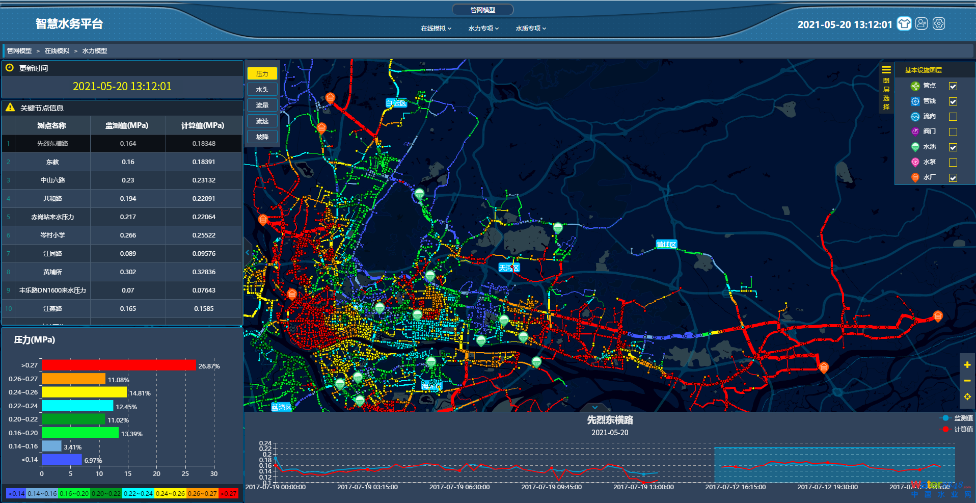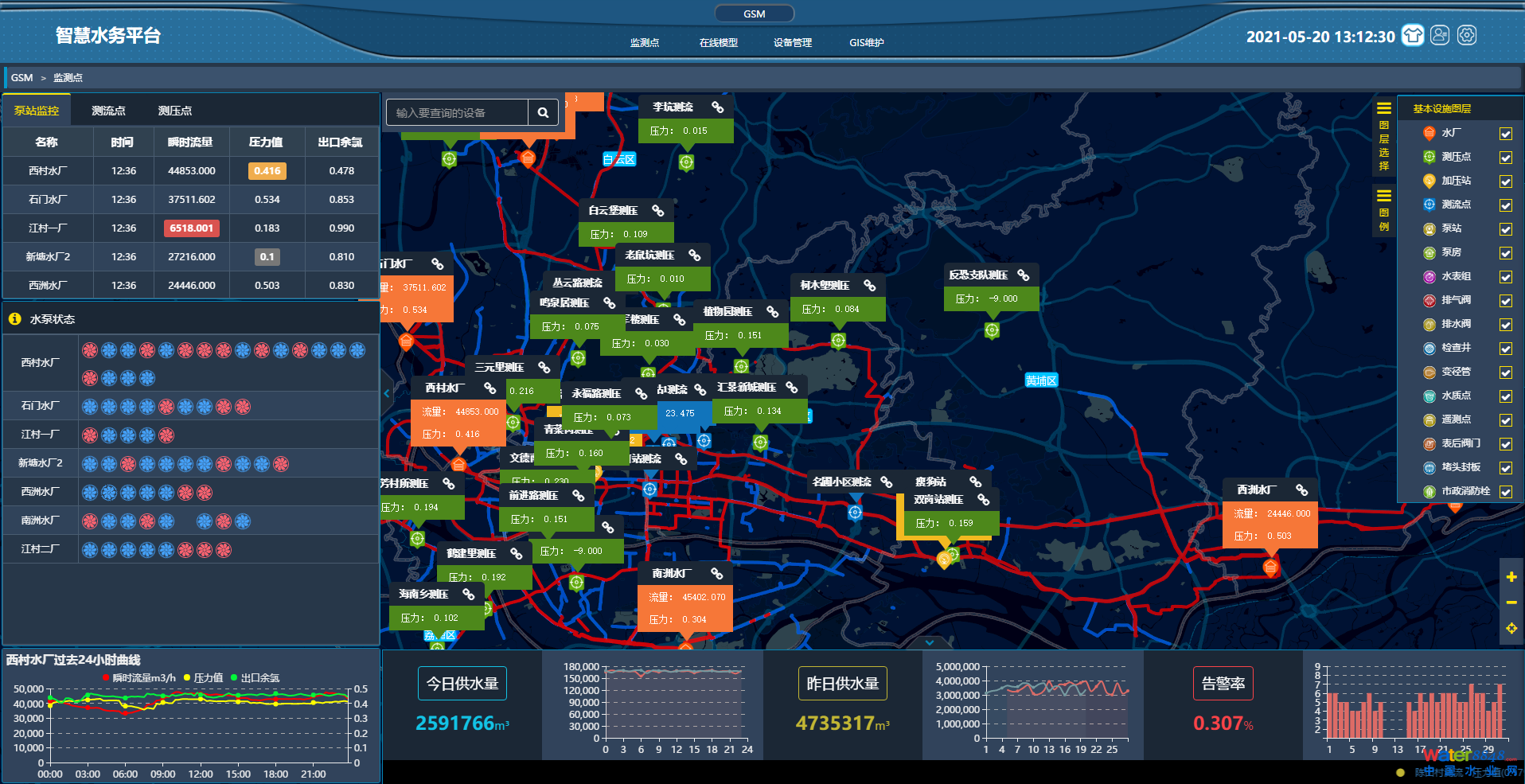 智慧水務(wù)運(yùn)維管理平臺(tái)以水務(wù)部門(mén)為主要服務(wù)對(duì)象,基于給排水系統(tǒng)所產(chǎn)生的數(shù)據(jù)資 源,平臺(tái)以水利模型為基礎(chǔ),集成了水網(wǎng)在線仿真系統(tǒng)、SCADA 數(shù)據(jù)采集與監(jiān)測(cè)系統(tǒng)、管 網(wǎng)漏損管理系統(tǒng)、二次供水設(shè)備監(jiān)控系統(tǒng)等。通過(guò)擴(kuò)大水務(wù)領(lǐng)域數(shù)據(jù)實(shí)時(shí)掌控能力和綜合信 息服務(wù)的廣度深度,更好的輔助領(lǐng)導(dǎo)決策,有效調(diào)配水務(wù)資源,不斷完善給排水系統(tǒng)治理。 南源智慧水務(wù)用心建設(shè)智慧水網(wǎng),以大數(shù)據(jù)為基礎(chǔ),輔以人工智能,提供運(yùn)營(yíng)管理、系 統(tǒng)診斷、能耗管控、安全兼容、自動(dòng)服務(wù)的硬件、軟件高效物聯(lián),實(shí)現(xiàn)全生命周期的智慧管 理和決策方案,為水務(wù)部門(mén)打造“城市水務(wù)物聯(lián)網(wǎng)”保駕護(hù)航。