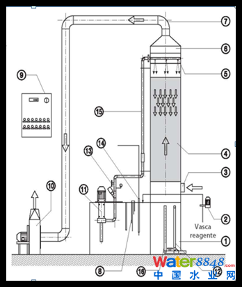 設(shè)備包含塔體、填料層、除霧層、配藥系統(tǒng)、加藥系統(tǒng)、水循環(huán)系統(tǒng)等。