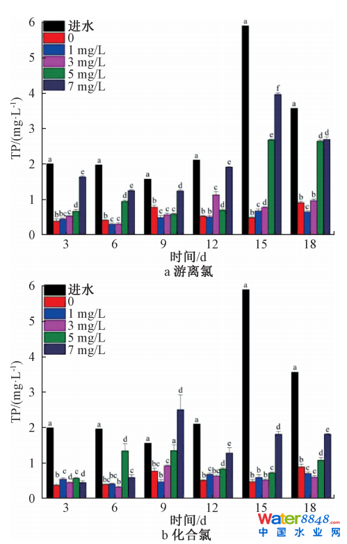 圖3 不同濃度余氯對(duì)活性污泥出水TP的影響