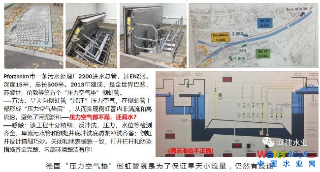 排水管道設(shè)計(jì)一定是從末端向起端設(shè)計(jì)的,污水、雨水管道要與下游道路污水、雨水管相接、與泵站相接,雨水管甚至要直接接入水體。所以一定要搞清楚相接點(diǎn)基本設(shè)計(jì)要素,管徑、坡度、管底高程,更要對(duì)下游系統(tǒng)可否接入所設(shè)計(jì)管道的設(shè)計(jì)水量進(jìn)行必要的驗(yàn)算和復(fù)核,可不能夠把管子“一捅了之”。能否把大學(xué)排水工程課本里的“管頂平接”、“水面平接”應(yīng)用到實(shí)際情景中,就是基本功的體現(xiàn)。雨水直接排入水體,就一定要說清楚所排入的水體基本情況,如常水位、多年平均高水位、最高水位等。要提醒的是:保證“不淤流速”是排水管道設(shè)計(jì)的靈魂,一定要慎用“最小坡度”,特別是在按照遠(yuǎn)期流量設(shè)計(jì)時(shí),否則就要考慮沖淤措施。德國“壓力空氣墊”的倒虹管就是案例。自流雨水排水口一定要在常水位以上,一定要避免淹沒出流,否則設(shè)計(jì)的就不是滿管重力流,設(shè)計(jì)方法就錯(cuò)了。