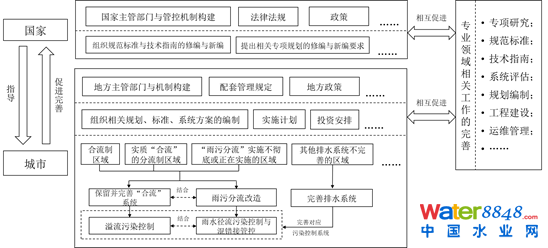 2013年,國(guó)務(wù)院發(fā)布《城鎮(zhèn)排水與污水處理?xiàng)l例》,是第一部專門針對(duì)城建領(lǐng)域城鎮(zhèn)排水與污水處理的國(guó)家行政法規(guī),其中,針對(duì)城市合流制排水系統(tǒng),提出“雨污合流地區(qū),應(yīng)當(dāng)按照城鎮(zhèn)排水與污水處理規(guī)劃要求,進(jìn)行雨水、污水分流改造”。基于該要求,各城市在當(dāng)時(shí)編制的排水防澇等相關(guān)專項(xiàng)規(guī)劃中,普遍提出了“雨污分流改造”的近遠(yuǎn)期要求,但實(shí)施過(guò)程中,不同城市又演化出了不同的策略選擇,詳見第3章。