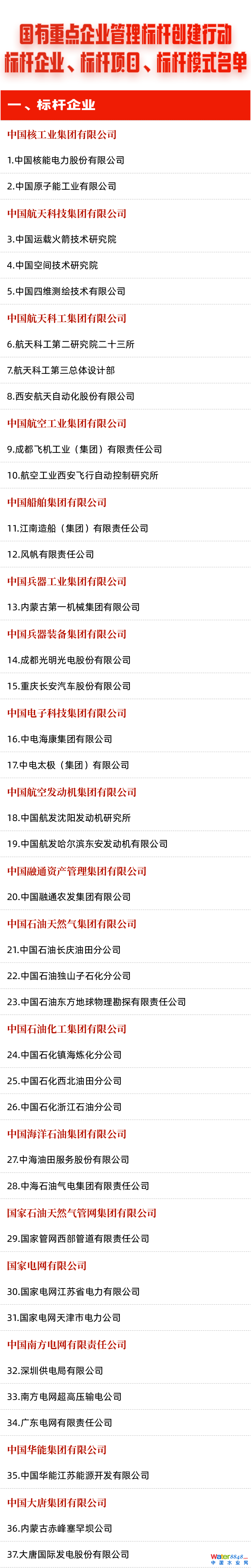 日前,國務(wù)院國資委組織開展國有重點(diǎn)企業(yè)管理標(biāo)桿創(chuàng)建行動,公布了管理標(biāo)桿企業(yè)、標(biāo)桿項目和標(biāo)桿模式(以下簡稱“三個標(biāo)桿”)名單,促進(jìn)國有企業(yè)不斷強(qiáng)化管理體系和管理能力建設(shè), 推動與世界一流對標(biāo)、加快向世界一流邁進(jìn)。