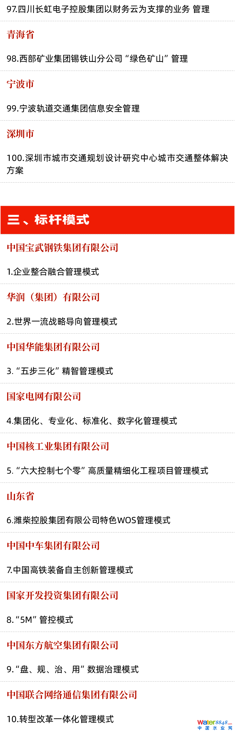 管理標(biāo)桿創(chuàng)建行動歷經(jīng)企業(yè)申報、專家評審、征求意見等環(huán)節(jié),最終確定的“三個標(biāo)桿”包含200家標(biāo)桿企業(yè)、100個標(biāo)桿項目和10個標(biāo)桿模式。文末附具體名單。