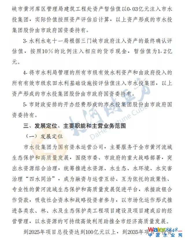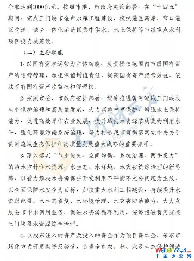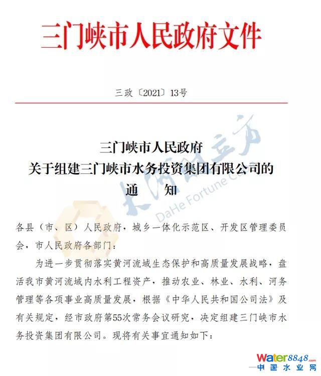 8月25日,三門峽市人民政府發(fā)布關(guān)于組建三門峽市水務投資集團有限公司的通知。