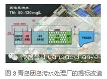 青島團(tuán)島污水處理廠也是一個(gè)比較典型的案例(圖 3),最初采用改良 A2/O 工藝,德國(guó)污水處理設(shè)備,設(shè)計(jì) 規(guī)模 10萬 m3/d,后來做一級(jí) A 提標(biāo) 改造設(shè)計(jì)時(shí),在改良 A2/O 工藝中融入 IFAS 工藝單元,出水水質(zhì)穩(wěn)定達(dá)到一 級(jí) A 要求。總體來說,青島的三個(gè)污水處理廠(海泊河、團(tuán)島、李村河)都運(yùn)行得不錯(cuò)。而團(tuán)島污水處理廠的最大特征是進(jìn)水總氮濃度非常高。實(shí)際上,這個(gè)廠對(duì)預(yù)測(cè)未來的污水處理廠具有一定的代表性意義。基本上以生活污水為主,進(jìn)水濃度比較高,總氮也比較高,前端污水管網(wǎng)系統(tǒng)比較完善,基本沒有設(shè)置化糞池。目前他們正在做側(cè)流厭氧 氨氧化工藝的應(yīng)用試驗(yàn),采用生物膜方式,年內(nèi)大概會(huì)啟動(dòng),未來兩年內(nèi)應(yīng)該 會(huì)建成運(yùn)行。如果建成并穩(wěn)定運(yùn)行,就可以為該廠開展主流工藝厭氧氨氧化的生產(chǎn)性試驗(yàn)提供很好的條件和場(chǎng)地。