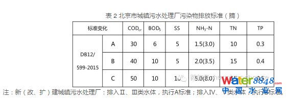 表 2 是北京市頒布的城鎮(zhèn)污水處理廠污染物排放標(biāo)準(zhǔn)?梢钥闯,所有新建、改建和擴(kuò)建的污水處理廠,都要達(dá)到所謂的“Ⅳ類水”標(biāo)準(zhǔn)。而所說的“Ⅳ 類水”其實(shí)是假Ⅳ類水,并不是真正意義上的Ⅳ類水,因?yàn)榭偭缀涂偟南拗得黠@沒有達(dá)到Ⅳ類水的標(biāo)準(zhǔn)要求,而且即便算是Ⅳ類水的標(biāo)準(zhǔn),也是河流的水質(zhì)標(biāo)準(zhǔn),不是湖庫的水質(zhì)標(biāo)準(zhǔn)。而對(duì)絕大部分城市水體來講,不管這個(gè)河道有多長(zhǎng),都已經(jīng)不是真正意義上的河,而只是一個(gè)河道形狀的湖庫系統(tǒng)。那么河道形的湖庫水體系統(tǒng)執(zhí)行的照理應(yīng)該是 湖庫水質(zhì)標(biāo)準(zhǔn),而這個(gè)河流水質(zhì)標(biāo)準(zhǔn)就 偏低得多。就北京地區(qū)來講,考慮到現(xiàn)有的城鎮(zhèn)污水處理廠執(zhí)行的標(biāo)準(zhǔn)和現(xiàn)在的國(guó)標(biāo)是完全一樣的,可以直白地說, 北京的Ⅳ類水并不是真實(shí)的,大部分污水處理廠并沒有實(shí)現(xiàn)“Ⅳ類水”的標(biāo)準(zhǔn), 只有新建和改建之后,才算是少數(shù)指標(biāo) 達(dá)到河流Ⅳ類水要求的準(zhǔn)“Ⅳ類水”。 北京這個(gè)“Ⅳ類水”標(biāo)準(zhǔn)考慮得比較合理的地方是,提高氨氮排放標(biāo)準(zhǔn),把總氮排放標(biāo)準(zhǔn)值控制在比較合理可行的水 平。但把CODcr 排放標(biāo)準(zhǔn)值分別調(diào)整為30 mg/L和20mg/L,就屬于比較荒謬且缺乏足夠科學(xué)依據(jù)的。