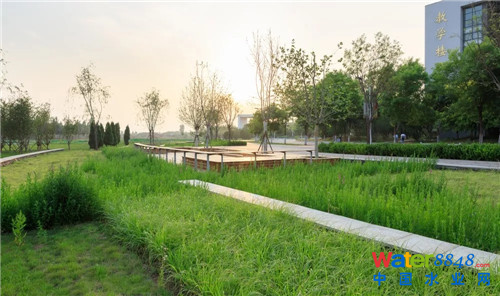 現(xiàn)在內(nèi)澇積水點已經(jīng)全部消除,雨水徑流控制率達到86.5%,雨水資源化利用率達到12.64%,同時地下水回升了3.43米。近3年來,灃西新城建成了由建筑小區(qū)、市政道路、景觀綠地及中央雨洪調(diào)蓄樞紐構(gòu)成的四級雨水收集利用體系,每年可有效回收雨水7萬余立方米,收集的雨水可以直接用于綠化和市政用水,形成了從源頭減排、過程控制到末端處理的海綿城市建設(shè)系統(tǒng)。