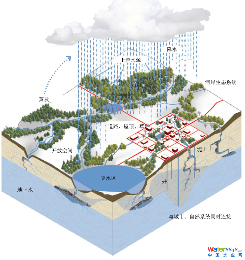 “海綿城市”這一概念的提出,轉(zhuǎn)變了城市建設(shè)的發(fā)展理念。構(gòu)建可持續(xù)的城市發(fā)展方式,其核心是構(gòu)建基于“綠灰結(jié)合”的現(xiàn)代城市雨洪控制系統(tǒng)——按照“源頭減排、過程控制、系統(tǒng)治理”的原則進(jìn)行系統(tǒng)策劃,站在源頭、過程、末端的不同角度,應(yīng)用“綠灰結(jié)合”的綜合技術(shù)措施,實(shí)現(xiàn)對雨水徑流總量、峰值、頻率、污染多重目標(biāo)的綜合控制。