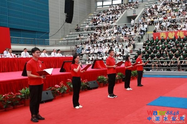“胸懷遠大理想,關(guān)注人類命運,忠于祖國,熱愛人民,探求真知,遵紀守法,文明誠信,博學篤志,切問近思,追求卓越,恪守學術(shù)道德,弘揚復(fù)旦精神,為學校爭光添彩,為國家貢獻力量!”復(fù)旦大學學生會主席申景允、研究生會主席毛天嬋帶領(lǐng)全體新生,面向校旗莊嚴宣誓。