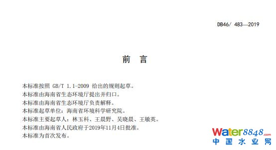 海南省地方標(biāo)準(zhǔn)《農(nóng)村生活污水處理設(shè)施水污染物排放標(biāo)準(zhǔn)》(DB 46/ 483—2019 )