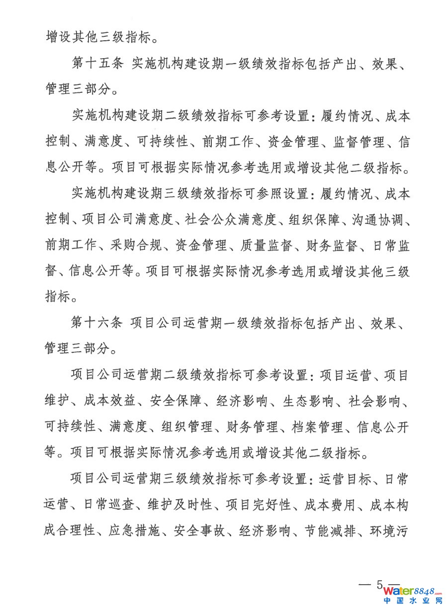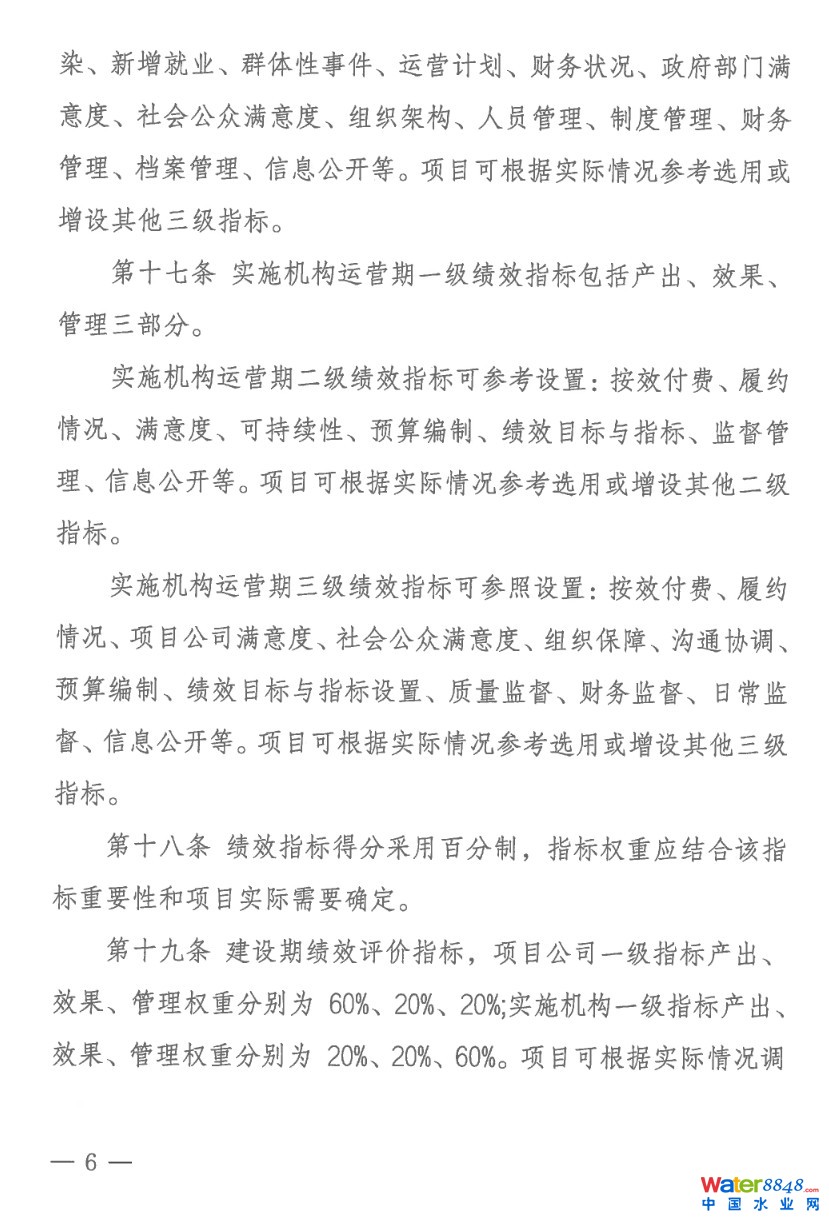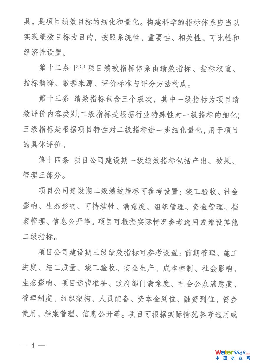 《實(shí)施細(xì)則》根據(jù)建設(shè)期或運(yùn)營(yíng)期的不同階段特點(diǎn)細(xì)化設(shè)置了三個(gè)級(jí)次的量化指標(biāo),針對(duì)不同評(píng)價(jià)對(duì)象分類設(shè)置評(píng)價(jià)指標(biāo)體系。例如針對(duì)項(xiàng)目公司,在PPP項(xiàng)目建設(shè)期設(shè)置竣工驗(yàn)收、可持續(xù)性、資金管理等指標(biāo),突出考察項(xiàng)目建設(shè)質(zhì)量和資金使用情況;在項(xiàng)目運(yùn)營(yíng)期設(shè)置項(xiàng)目運(yùn)營(yíng)成本等經(jīng)濟(jì)指標(biāo)、社會(huì)環(huán)境影響等效果指標(biāo),以及項(xiàng)目規(guī)范性等管理指標(biāo),多維度綜合評(píng)價(jià)項(xiàng)目的經(jīng)濟(jì)社會(huì)效益。PPP項(xiàng)目績(jī)效評(píng)價(jià)結(jié)果將作為按效付費(fèi)、落實(shí)整改、監(jiān)督問(wèn)責(zé)的重要依據(jù)。