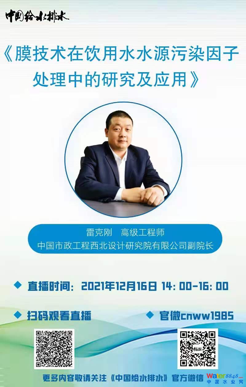 今天直播的主題為:膜技術(shù)在飲用水水源污染因子處理中的研究及應(yīng)用