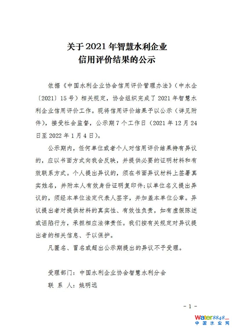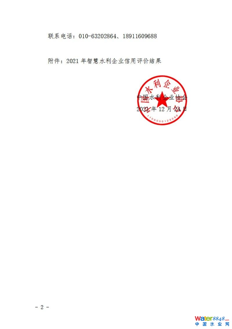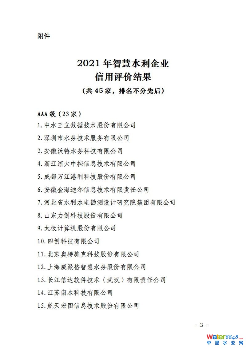 2021年智慧水利企業(yè)信用評價結(jié)果公示