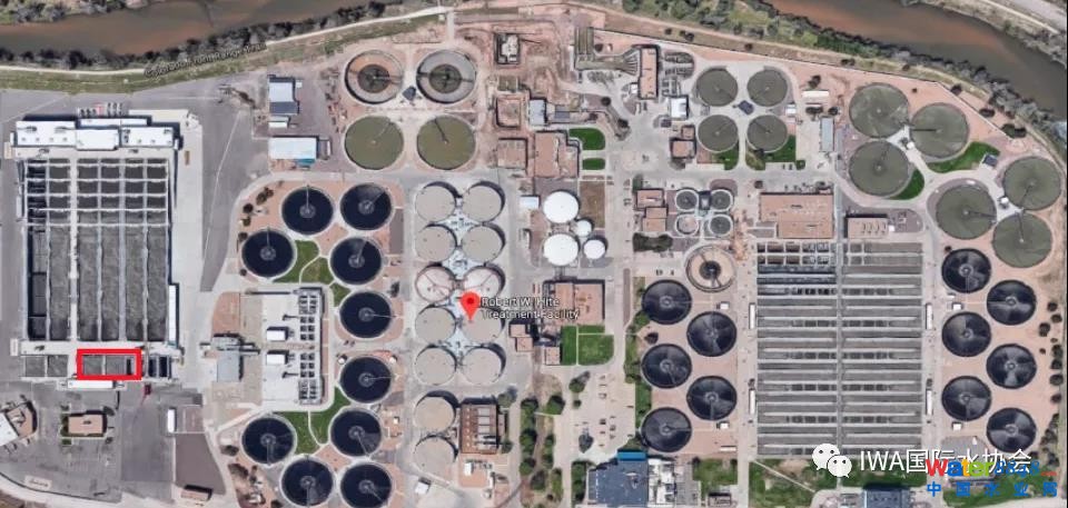 目前ANITA Mox最大的案例位于科羅拉多州的丹佛Robert W. Hite再生水廠。如下圖所示,改造方案是將其中一個(gè)回流污泥再氧化池改為兩個(gè)平行的MBBR反應(yīng)器。