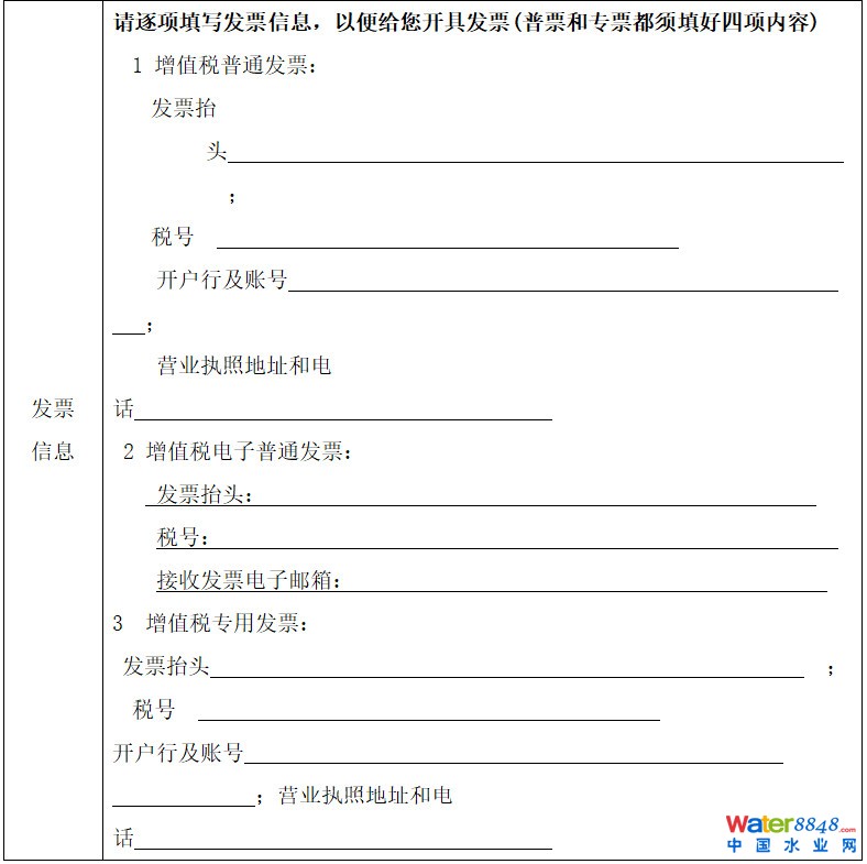 注:各代表需開具哪種類型發(fā)票就填寫哪種,如需開具增值稅專用發(fā)票及普通發(fā)票,需四項(xiàng)信息填寫完整。