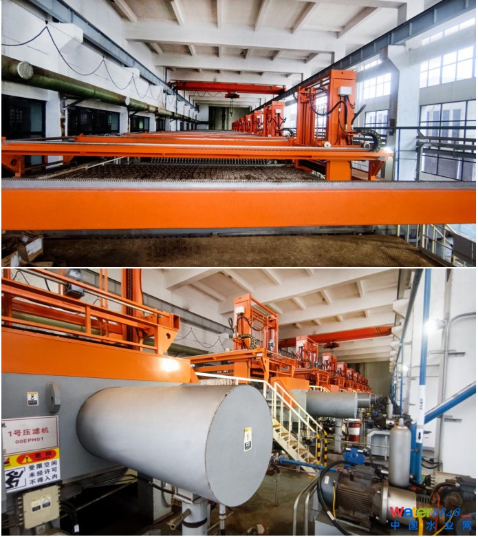 (3)壓榨:改性后的污泥由壓榨進(jìn)料泵送至超高壓壓榨機(jī)進(jìn)行壓榨處理,得到含水率45%以下的塊狀泥餅。塊狀泥餅通過泥餅輸送裝置輸送至后續(xù)工藝段。