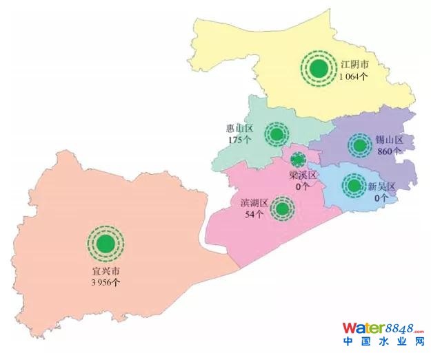 圖1 無錫市農(nóng)村生活污水治理設(shè)施分布情況