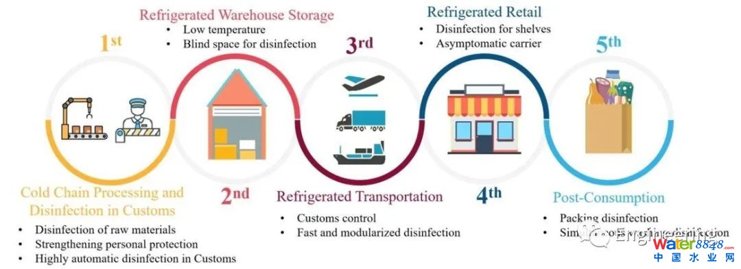 新冠病毒以冷鏈貨物為媒介的“物傳人”傳播已被證實為新冠疫情的傳播方式之一。對冷鏈貨物的高效消毒是阻斷病毒“物傳人”傳播途徑的最有效方法。然而,在實際的冷鏈消毒作業(yè)過程中,存在著病毒檢測和消殺工作量巨大、常規(guī)消毒劑易結(jié)冰、存在消毒死角、產(chǎn)生有害消毒副產(chǎn)物等關鍵問題。針對這些問題,文中依據(jù)大量實際消毒工程案例和長期研究積累,提出涵蓋冷鏈貨物全生命周期的多級屏障消毒體系,并指出發(fā)展綠色消毒技術對于保證冷鏈貨物高效消毒的重要作用,為有效阻斷新冠病毒“物傳人”傳播途徑提供了策略支持。