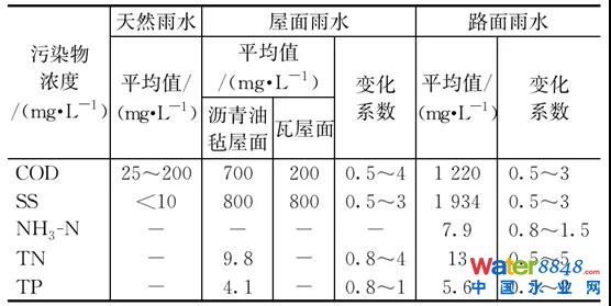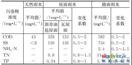 表1 北京城區(qū)不同匯水面初期徑流污染物濃度
