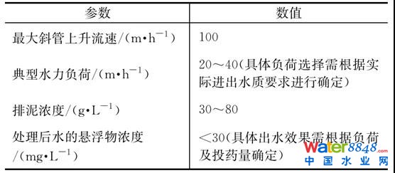 (2)水力負(fù)荷高,由于以微砂為核心形成的絮體沉降速度快,在相同出水水質(zhì)前提下,可以允許較高的水力負(fù)荷。