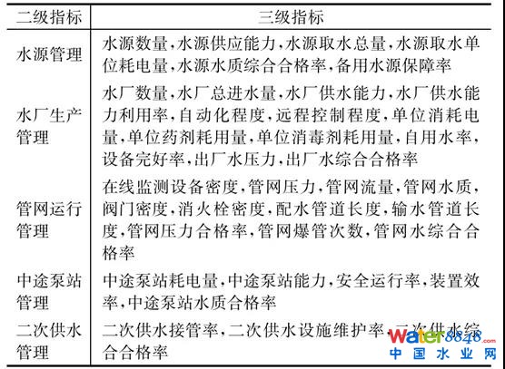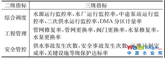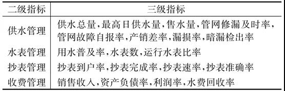 (1)生產型指標。城市供水生產的可靠性、持續(xù)性和高效運行關乎城市供水安全,從水源、水廠、管網、管網中途泵站、小區(qū)二次供水再到用戶,生產鏈條環(huán)節(jié)上的大數據分析指標,反映了供水企業(yè)生產效率的高低、管理計劃執(zhí)行等情況,有助于發(fā)現問題并采取改進措施(見表1)。 表1 生產型指標