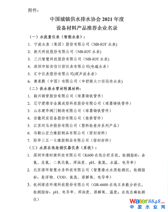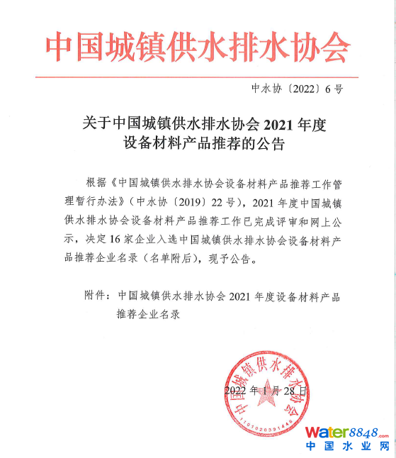 公告丨關(guān)于中國(guó)城鎮(zhèn)供水排水協(xié)會(huì)2021年度設(shè)備材料產(chǎn)品推薦的公告