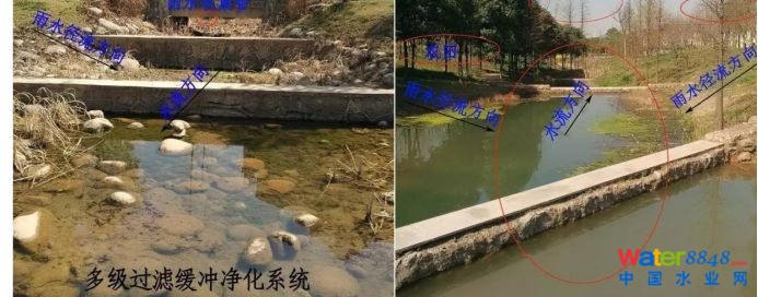 在消毒劑廢水產(chǎn)生后,通過地表徑流調(diào)蓄、攔截和凈化,對含消毒劑廢水進行一次處理。通過多級過濾緩沖凈化系統(tǒng),對收集的地表徑流雨水進行層層過濾凈化,避免對城市水質(zhì)的影響;在上游與消毒劑廢水交匯處設置多級過濾緩沖凈化系統(tǒng),對消毒劑面源污染引起的水質(zhì)問題進行處理,確保上游入水水質(zhì),降低消毒活動對水質(zhì)的影響。