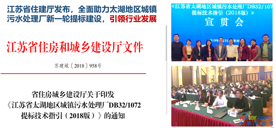 項目重點圍繞江蘇省新地標排放指標與限值優(yōu)化選取及提標建設(shè)技術(shù)需求,對太湖地區(qū)220余座污水處理廠開展了運行大數(shù)據(jù)分析、問卷調(diào)查、現(xiàn)狀調(diào)研及大批量的工程測試,摸清本底并識別提標共性難題,系統(tǒng)完成現(xiàn)狀污水處理全過程問題診斷與提標難度解析,提出了涵蓋源頭管控、管網(wǎng)提效、處理系統(tǒng)挖潛及精細化設(shè)計運行等全過程系統(tǒng)化集成技術(shù)路線和實施方案,結(jié)合項目團隊十余年全國不同地區(qū)大規(guī)模污水處理工程測試和跟蹤評估,充分吸納相關(guān)行業(yè)主管部門、設(shè)計和運營單位的意見與建議,編制《江蘇省太湖地區(qū)城鎮(zhèn)污水處理廠DB32/1072提標建設(shè)技術(shù)指引(2018版)》(以下簡稱“指引”),由江蘇省住建廳于2018年12月21日以政策文件形式正式發(fā)布。