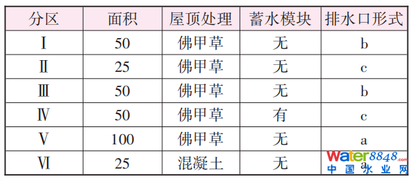 大型綠色屋頂實驗區(qū)設有5個綠色屋頂(分別是Ⅰ、Ⅱ、Ⅲ、Ⅳ、Ⅴ)和混凝土屋頂Ⅵ,大型綠色屋頂實驗區(qū)建設方案見表3。